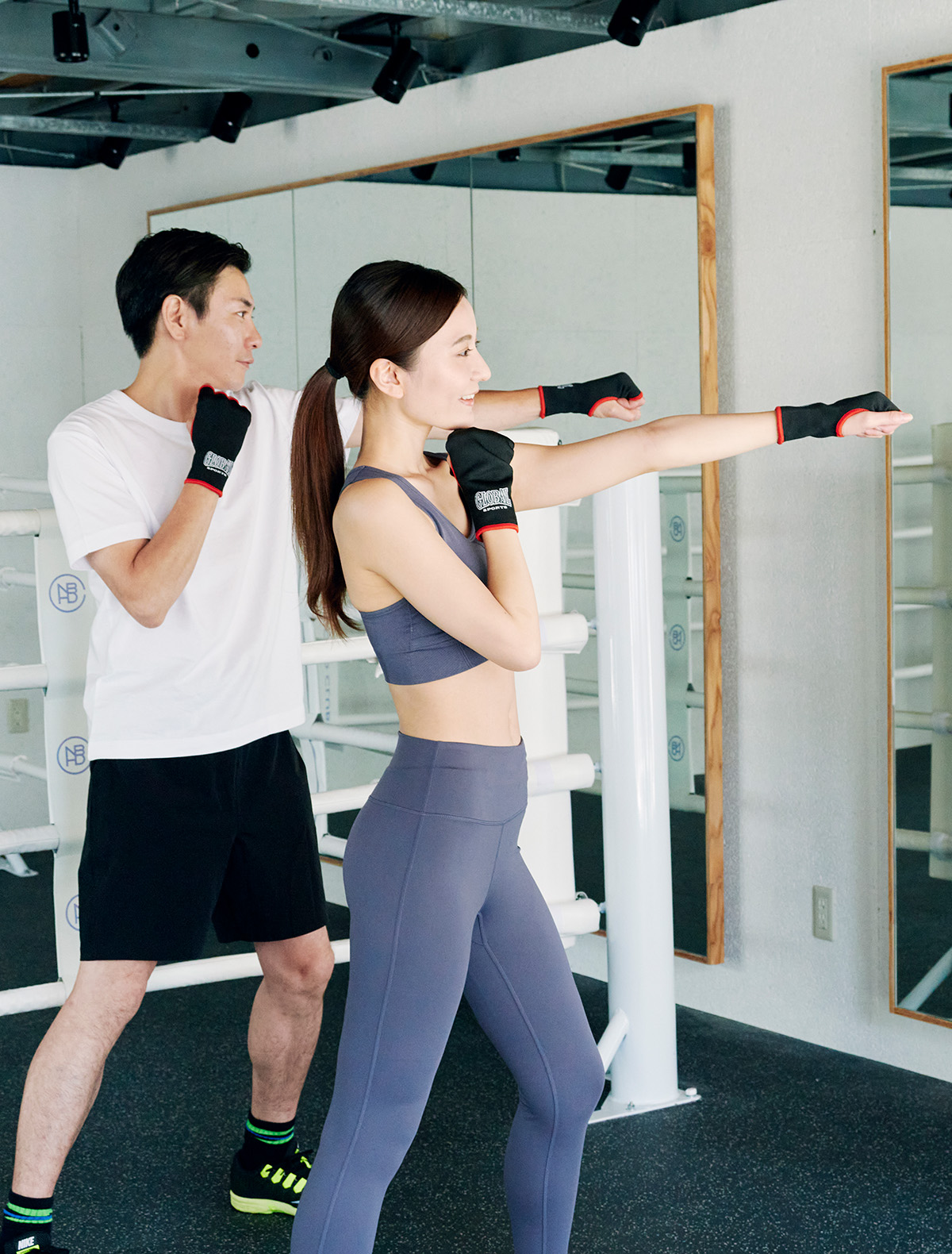 ミット打ち(2分×2ラウンド)。トレーナーの持つミットに向かってパンチ&キック!